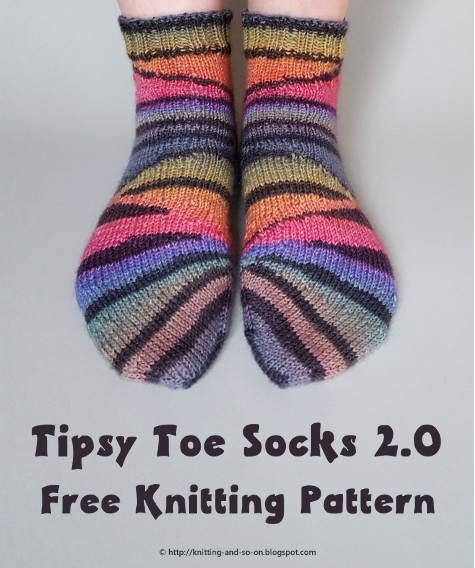 These socks are knitted toe-up, but unlike the original Tipsy Toe Sock pattern (where I used German short rows for the wedges, but not the heel) I used only Shadow wrap short rows here. For me these short rows looked neater than any other type that I had tried to knit in the round.